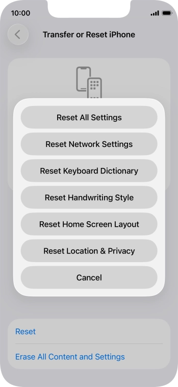 Press Transfer or Reset iPhone.