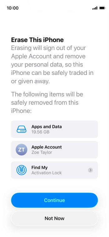 Press Erase All Content and Settings.