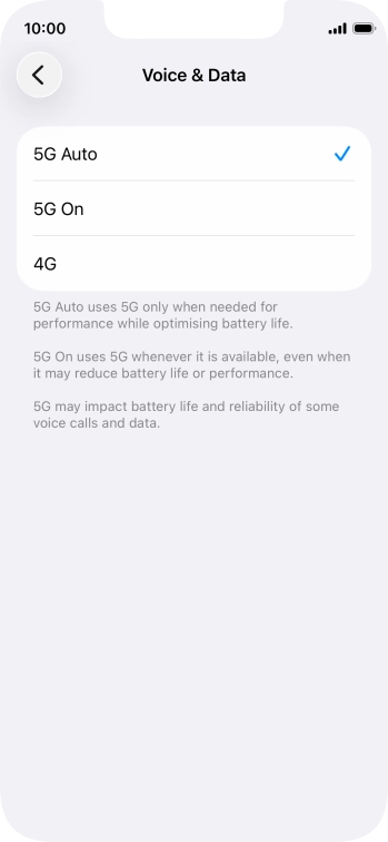 To turn on automatic switch between 5G and 4G, press 5G Auto.