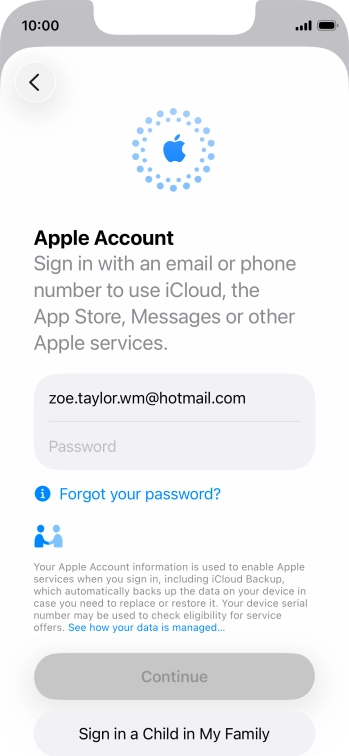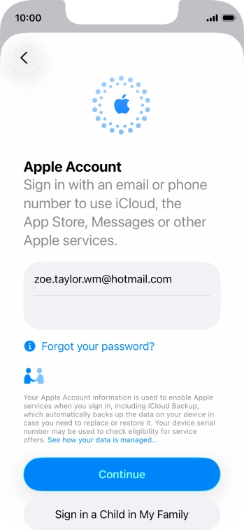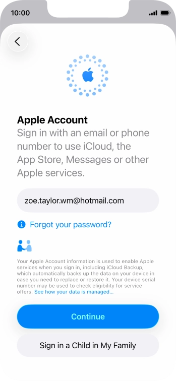 An Apple Account gives you access to a number of services on your phone such as iCloud, App Store and iTunes. To activate an Apple Account on your phone you need to set up your phone for internet.