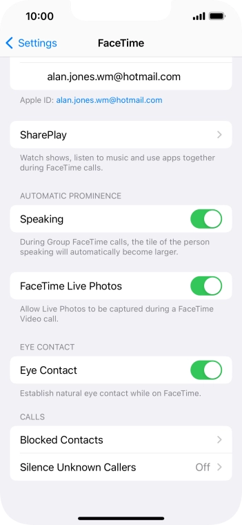 Press the required setting below "YOU CAN BE REACHED BY FACETIME AT".