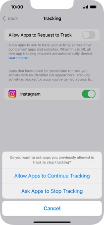 Press the indicator next to "Allow Apps to Request to Track" to turn the function on or off.