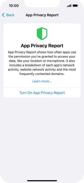 Press Turn On App Privacy Report to turn on the function.