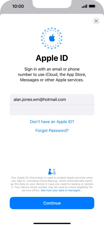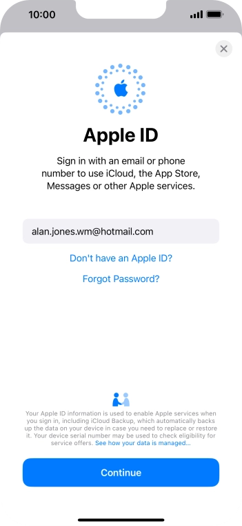 If you don t have an Apple ID, press Don't have an Apple ID? and follow the instructions on the screen to create an Apple ID.