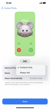 Press Name and follow the instructions on the screen to edit your name on the Contact Poster.