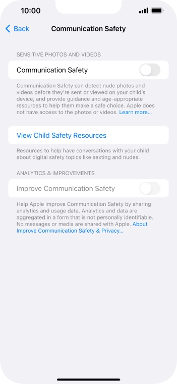 Turn Communication Safety on or off