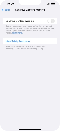 Press the indicator next to "Sensitive Content Warning" to turn the function on or off.