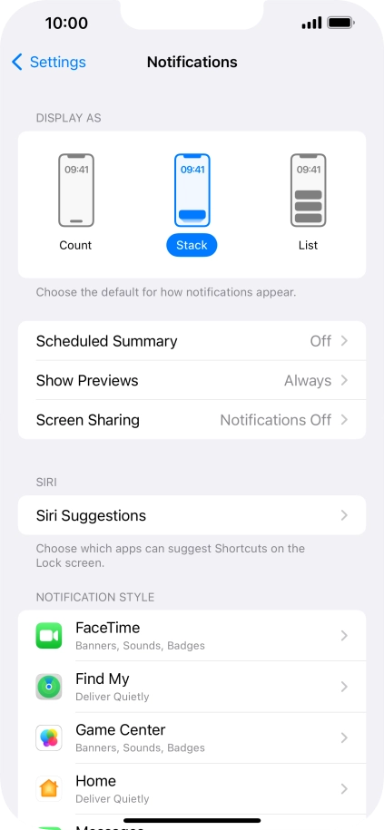 3 Select setting for notification preview