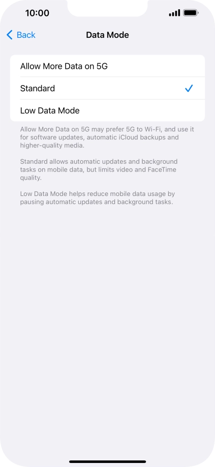 2 Select settings for data usage