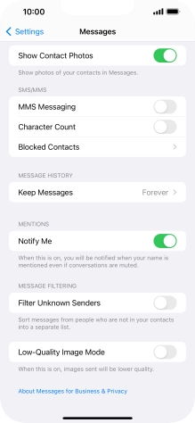 Press the indicator next to "MMS Messaging" to turn on the function.
