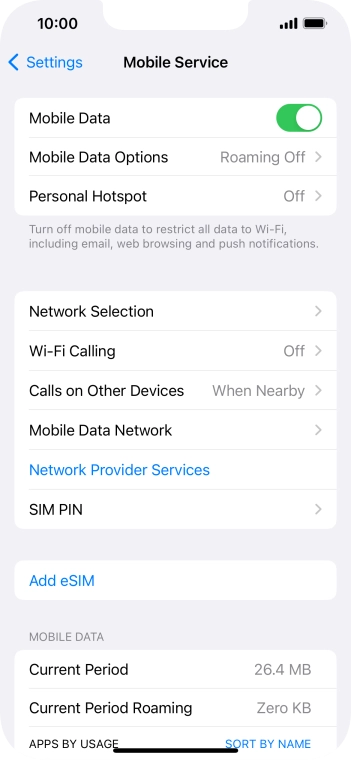 Press Mobile Data Options.