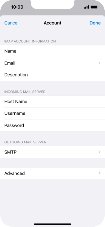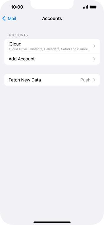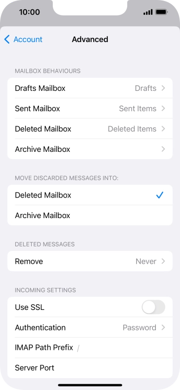 Press the required email account and follow the instructions on the screen to select settings for the specific account.