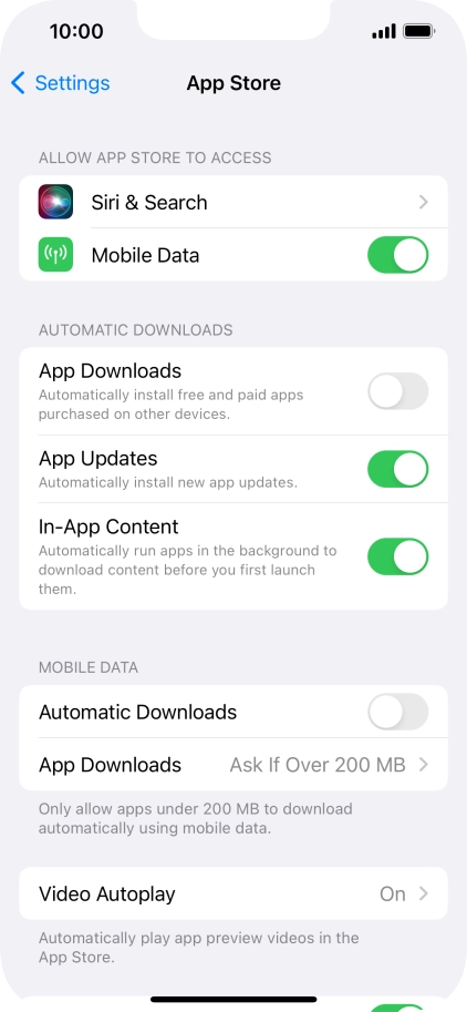 Press the indicator next to "Automatic Downloads" to turn the function on or off.