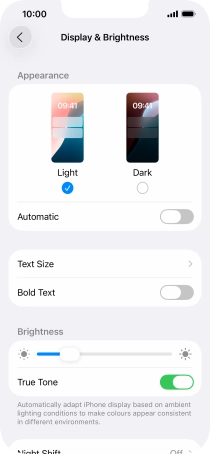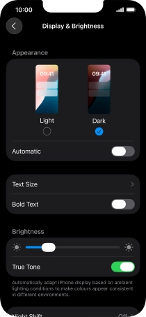 If you turn on the function, press Options and follow the instructions on the screen to select the required period of time for Dark Mode.