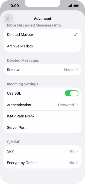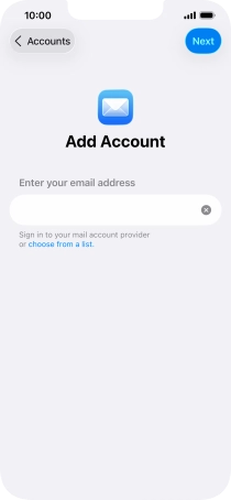 Press the required email account and follow the instructions on the screen to select settings for the specific account.
