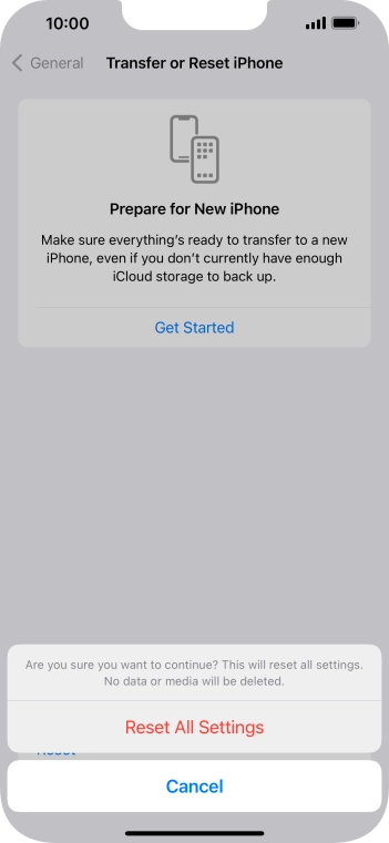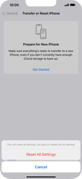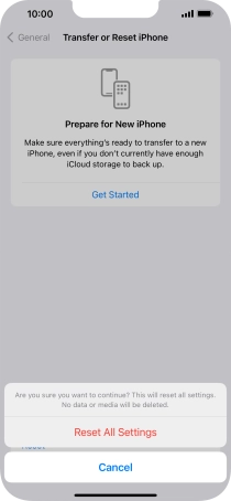 Press Reset All Settings. Wait a moment while the factory default settings are restored. Follow the instructions on the screen to set up your phone and prepare it for use.