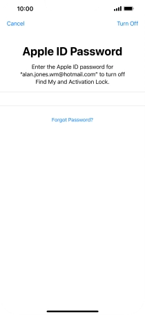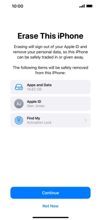 Key in the password for your Apple ID and press Erase iPhone. Wait a moment while the factory default settings are restored. Follow the instructions on the screen to set up your phone and prepare it for use.
