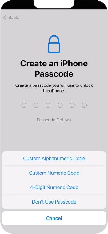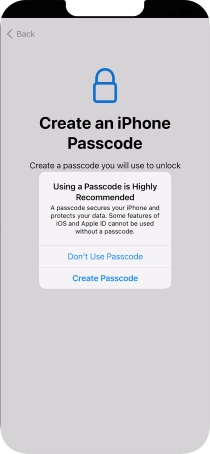 Follow the instructions on the screen to turn on use of phone lock code or press Don't Use Passcode.