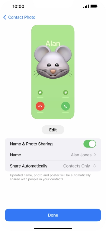Press Name and follow the instructions on the screen to edit your name on the Contact Poster.
