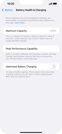 Press the indicator next to "Optimised Battery Charging" to turn the function on or off.