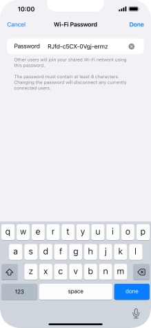 Key in the password for personal hotspot