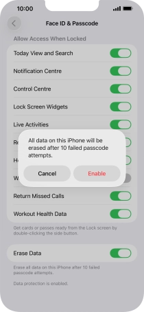 Press the indicator next to "Erase Data" to turn the function on or off.