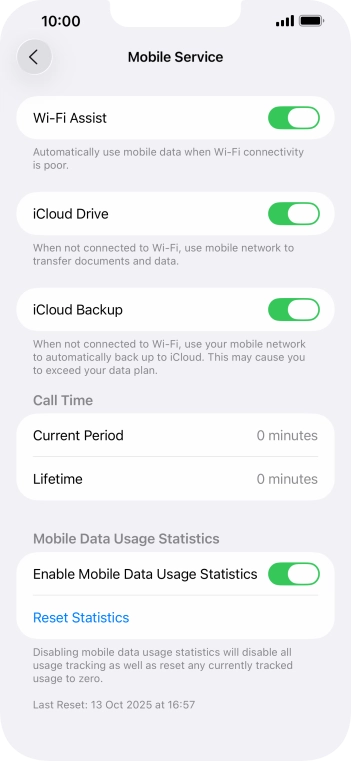 Press the indicator next to "Wi-Fi Assist" to turn the function on or off.