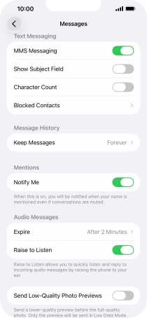 Press the indicator next to "MMS Messaging" to turn on the function.