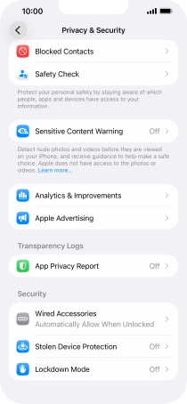Press Privacy & Security.