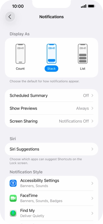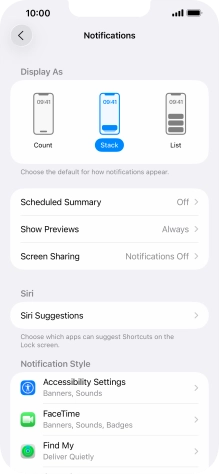 You can turn display of notifications when using SharePlay or Screen Mirroring on or off.