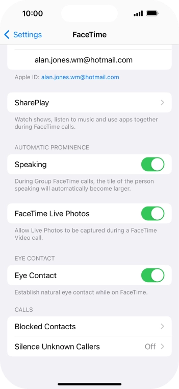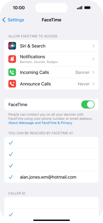 Press the required setting below "YOU CAN BE REACHED BY FACETIME AT".