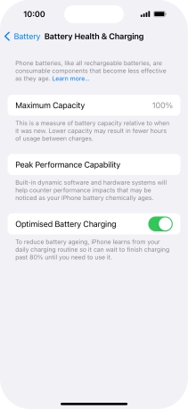 Press the indicator next to "Optimised Battery Charging" to turn the function on or off.