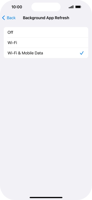 To turn off background refresh of apps, press Off.