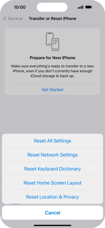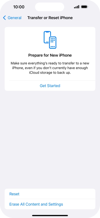 Press Reset All Settings. Wait a moment while the factory default settings are restored. Follow the instructions on the screen to set up your phone and prepare it for use.