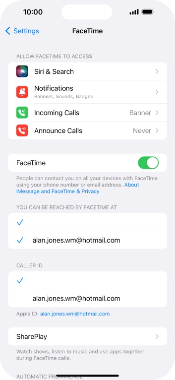 Press the required setting below "YOU CAN BE REACHED BY FACETIME AT".