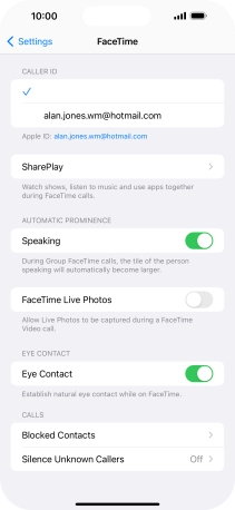 Select FaceTime settings