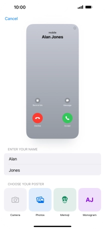 Press Name and follow the instructions on the screen to edit your name on the Contact Poster.