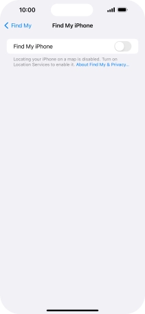 Press the indicator next to "Find My iPhone" to turn on the function.