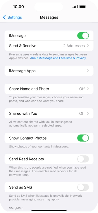 Press the indicator next to "Send as SMS" to turn the function on or off.