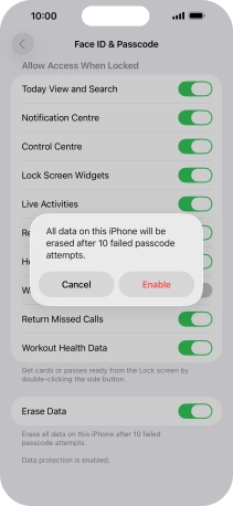 Press the indicator next to "Erase Data" to turn the function on or off.