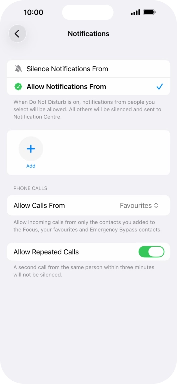 Press Add Schedule and follow the instructions on the screen to select settings for automatic activation of Do Not Disturb.