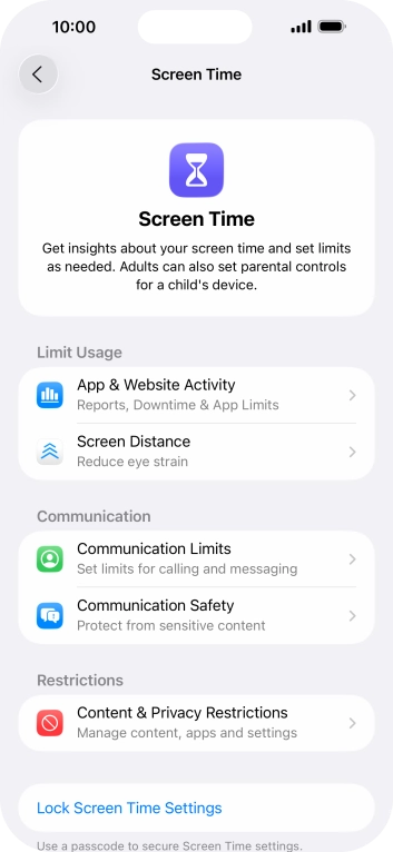 Press Screen Time and optionally select the required member of your family group.