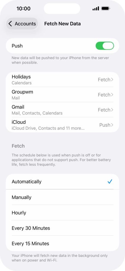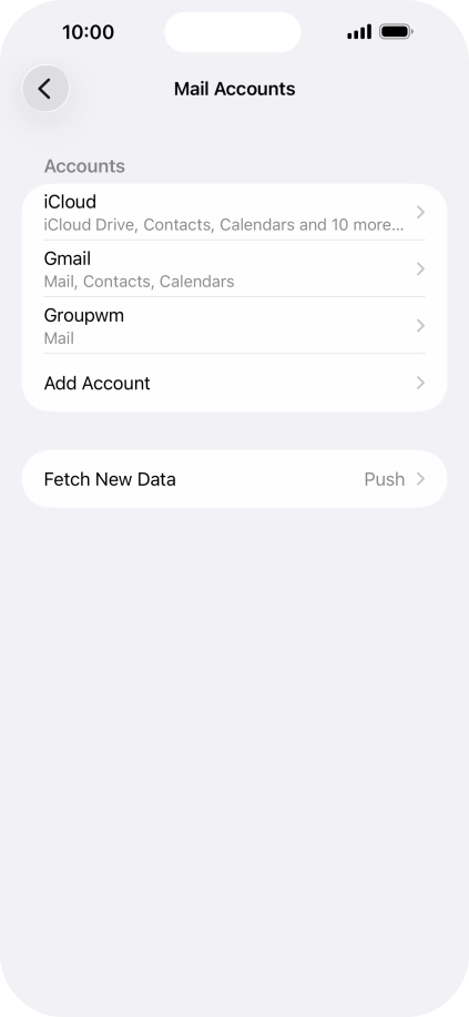 Press the required email account and follow the instructions on the screen to select settings for the specific account.