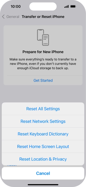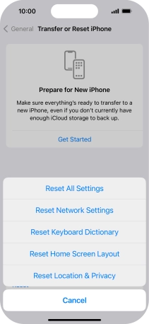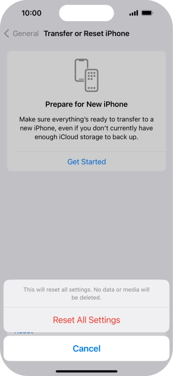 Press Reset All Settings. Wait a moment while the factory default settings are restored. Follow the instructions on the screen to set up your phone and prepare it for use.