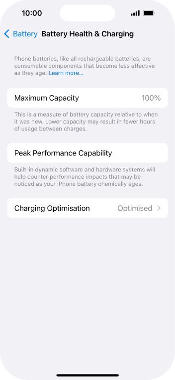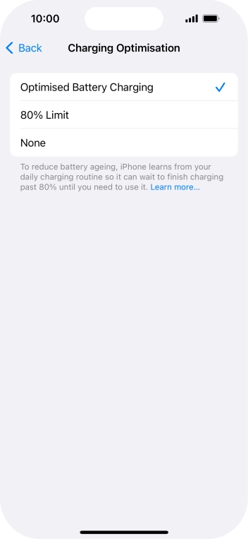 Press Optimised Battery Charging to turn the function on or off.