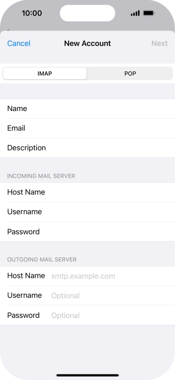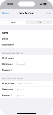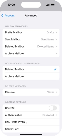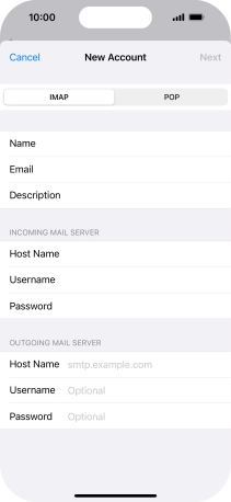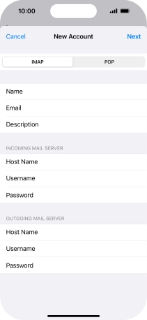 Press the required email account and follow the instructions on the screen to select settings for the specific account.
