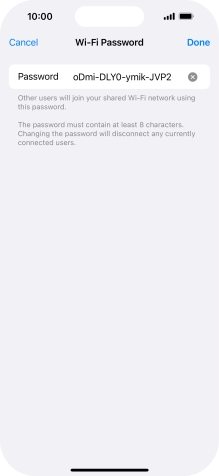 Key in the password for personal hotspot