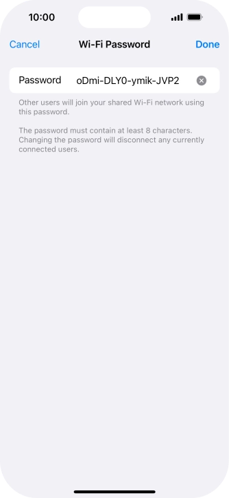 2 Key in the password for personal hotspot