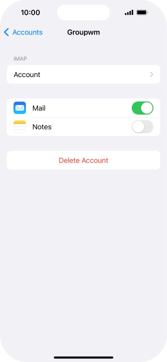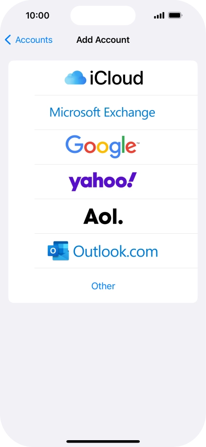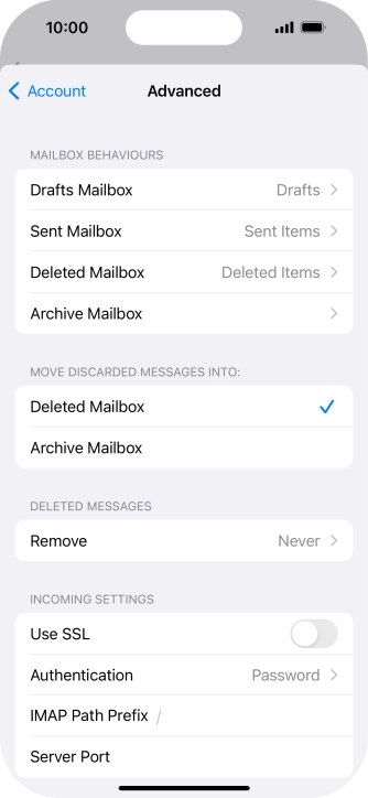 Press the required email account and follow the instructions on the screen to select settings for the specific account.