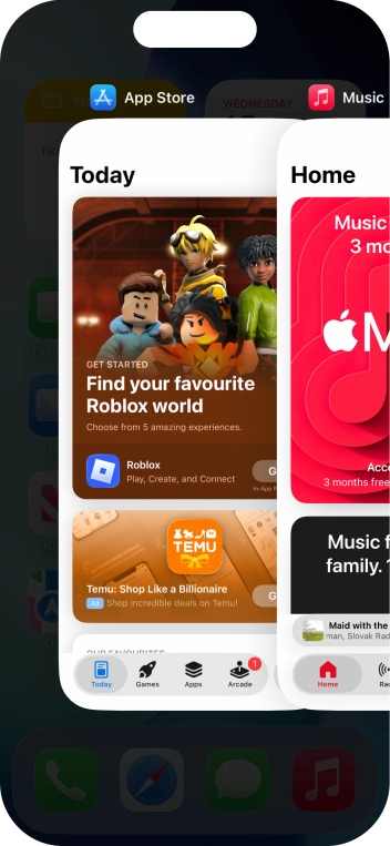 Slide your finger slowly upwards starting from the bottom of the screen until the list of running applications is displayed.